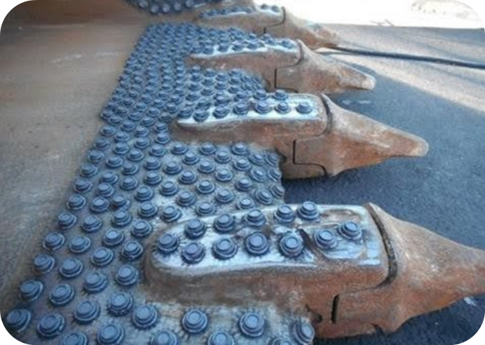 Empresa desenvolve diversos projetos em revestimentos. Atualmente atuamos com revestimentos em chapas Hardox, materiais bi-metálicos e botões de tungstênio.